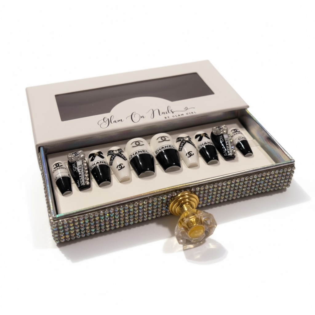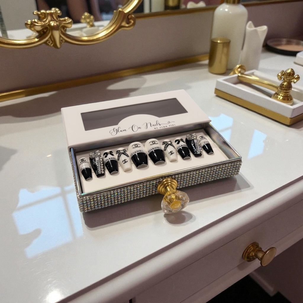 Inspired by timeless Parisian elegance, these classy black and white design captures the essence of haute couture. Each design embodies refined minimalism and classic luxury, featuring understated details that speak volumes. Perfect for those who appreciate understated glamour and impeccable style, these nails elevate any look with effortless chic. Embrace the iconic aesthetic of fashion's most legendary icon—because true elegance never goes out of style. These aren't your typical nails—they're a statement of confidence and refined rebellion.