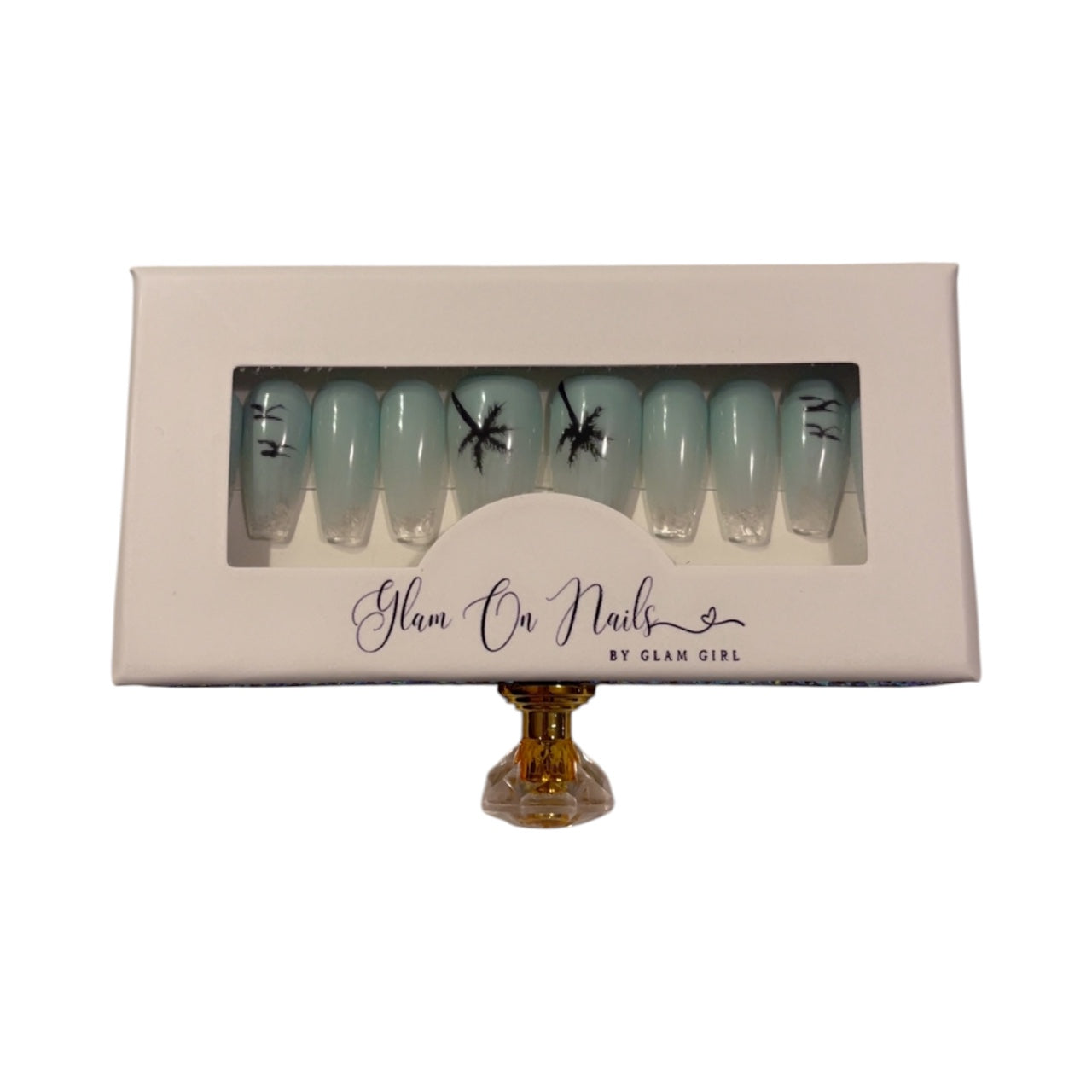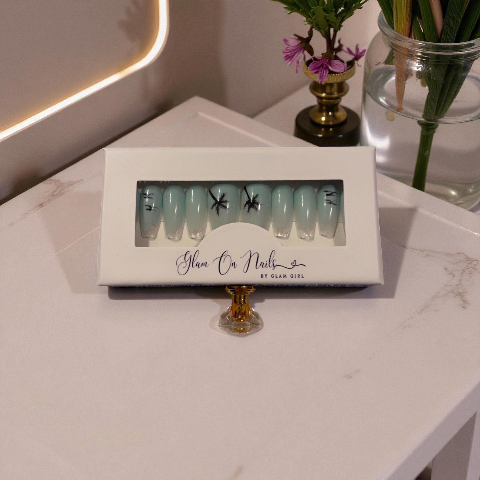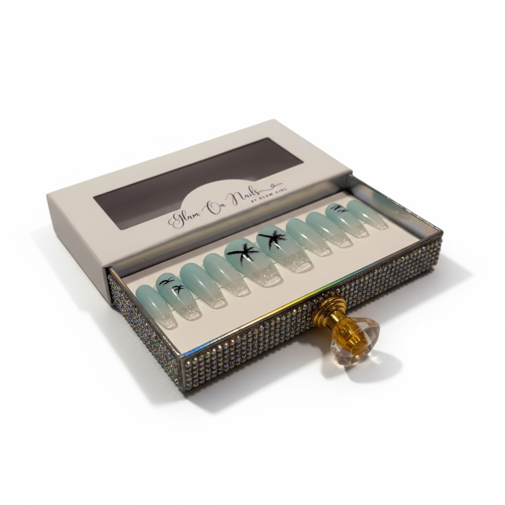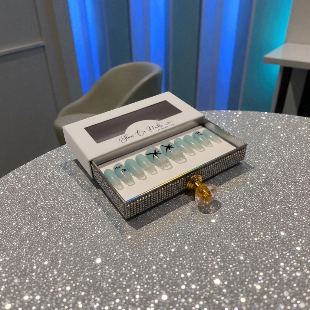 Nail kit included in every box. Includes 2g nail glue, double sided gel stickers, alcohol pad, mini nail file, applicator.