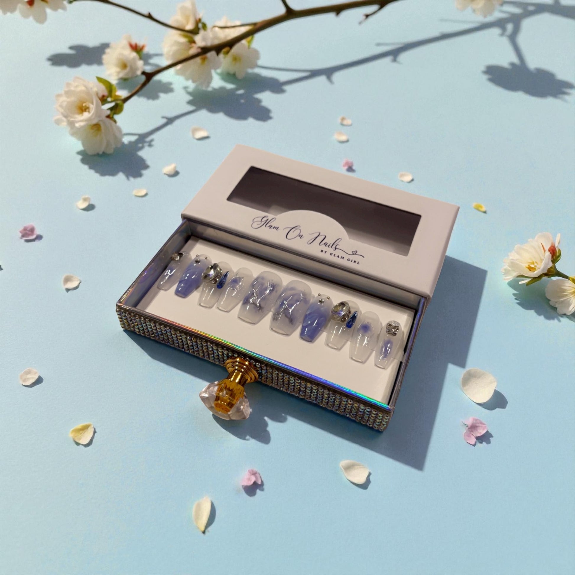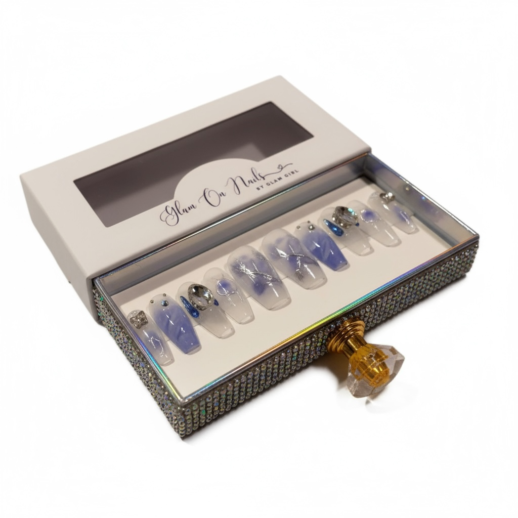 Get ready to sparkle and shine! These are your ticket to instant glam. Adorned with dazzling diamonds and jewels, each set showcases exquisite colors and detailed designs that'll have everyone asking where you got your nails done. Pop them on in seconds and let your fingertips do the talking. Because life's too short for boring nails!