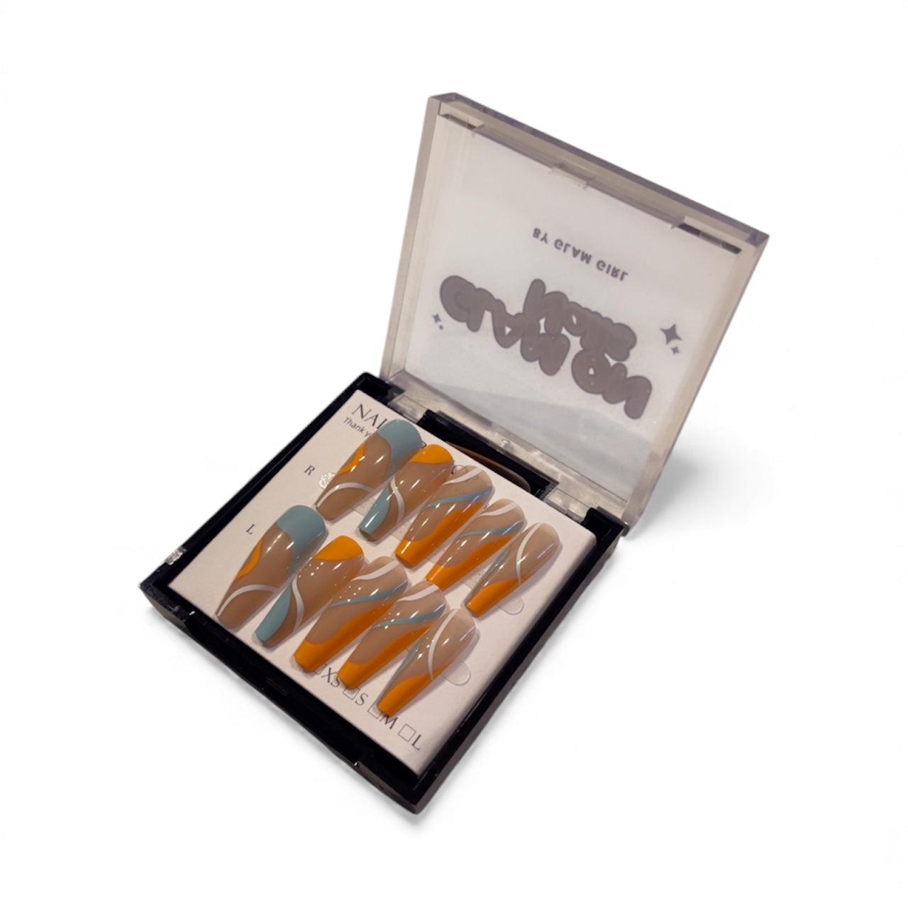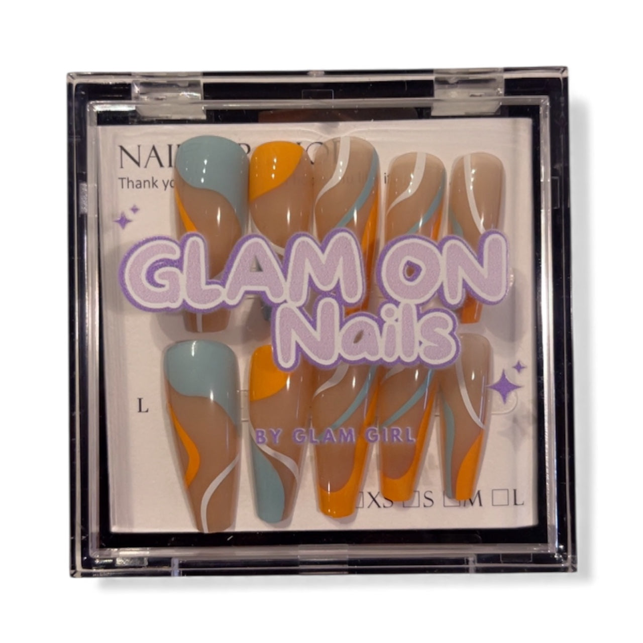 Bring the sunshine vibes year-round with Creamsicle—your new favorite press-on nail obsession! These long beauties blend soft blue, bright orange, and crisp white lines into a design that screams summer fun. Whether you're dreaming of beach days or just need an instant mood boost, Creamsicle delivers that sweet, feel-good energy straight to your fingertips. Easy to apply, impossible to ignore—slip them on and let your nails do the talking!